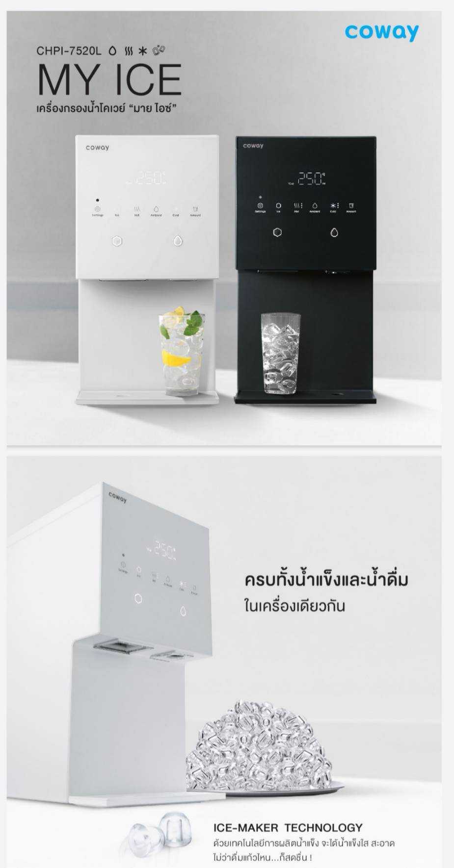 ตอบโจทย์คนที่ชอบทานน้ำแข็ง เพราะนอกจากเลือกอุณหภูมิน้ำได้แล้ว Coway My Ice ยังสามารถทำน้ำแข็งได้ ครบจบในเครื่องเดียว
